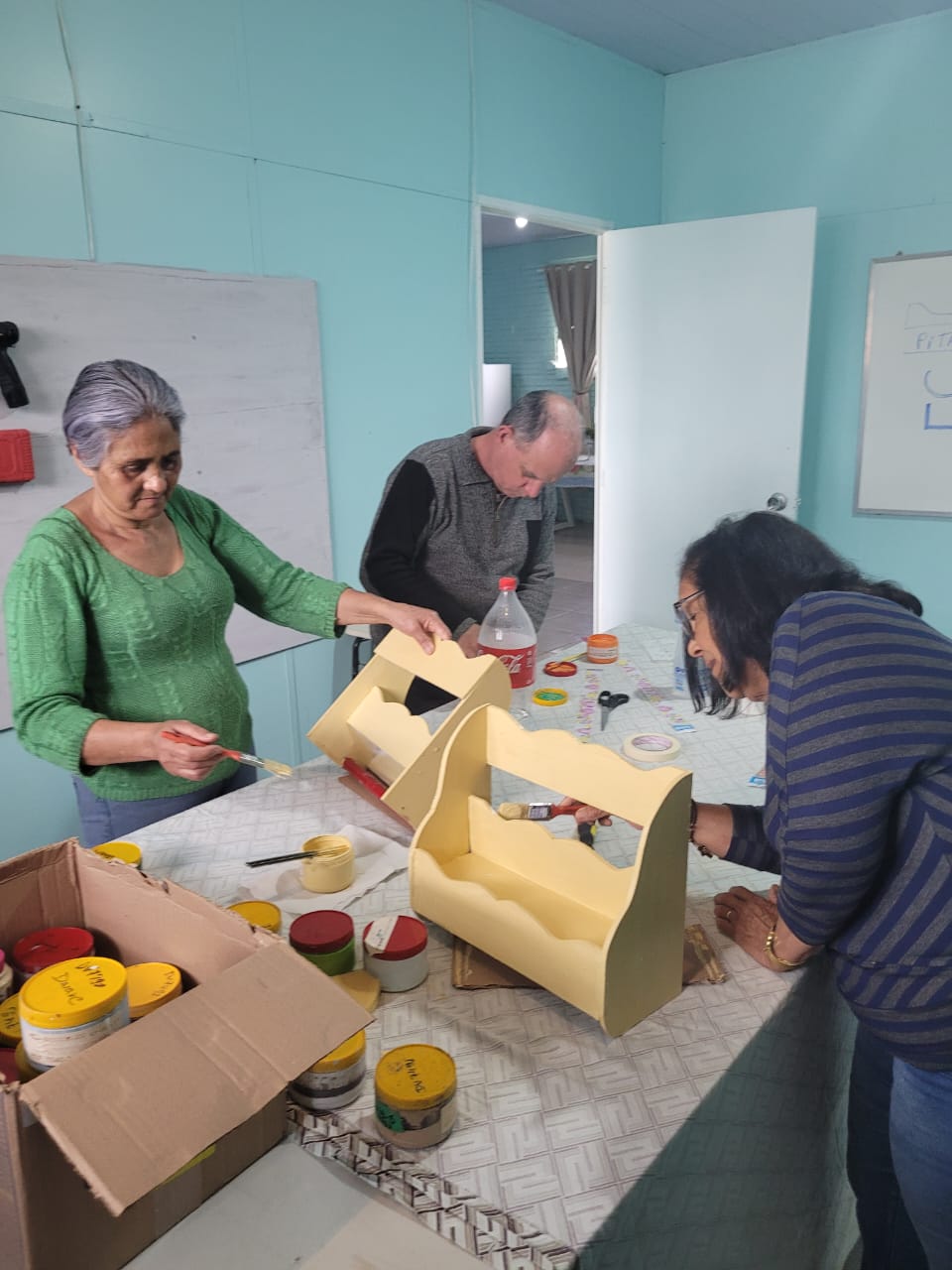 décimo quarto encontro onde as alunas decoraram seus porta temperos, com tintas doadas pela @tintasdilkin de Ivoti, também usaram adesivos e stencil.