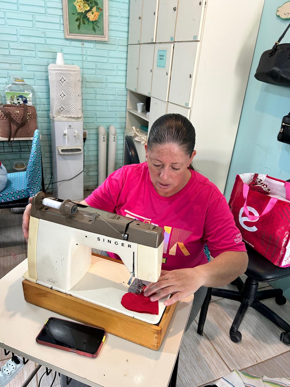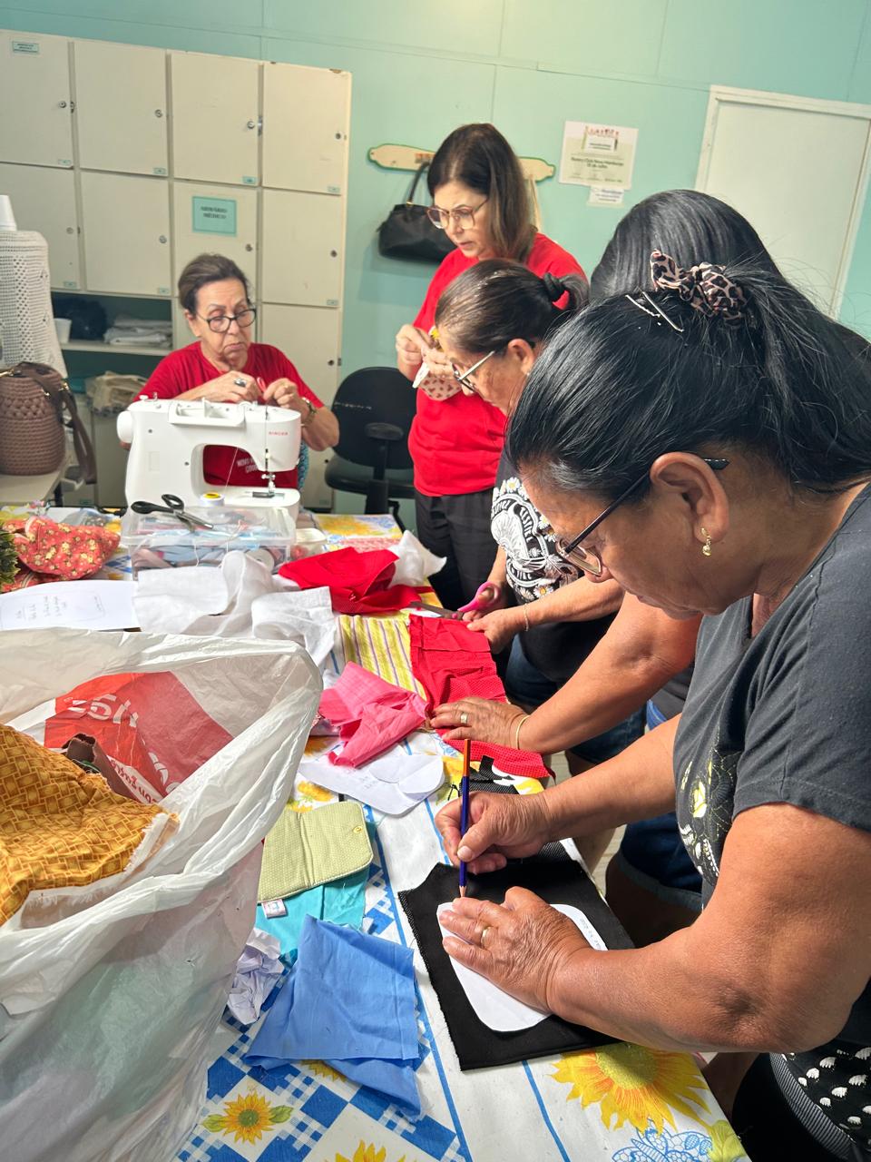 16.10 foi dia de encontro do Grupo “Mulheres que Iluminam” onde as queridas amigas e parceiras do Lions Club Courocap NH, Susana, Cláudia e Nice trouxeram acolhimento sensível e amoroso como sempre e ainda o trabalho de costura de porta óculos em tecidos e chaveiro de coração, desenvolvendo habilidades de corte e costura.